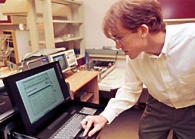 John Lockwood programando los datos que permiten al dispositivo frustrar la acción del gusano SoBig. Lockwood y sus estudiantes graduados, se han acercado el problema de los virus, vía hardware, en vez de software. Cuándo un virus o gusano es descubierto, el sistema puede detener silenciosamente todo tráfico malicioso, o generar un mensaje emergente en la computadora del usuario final. |