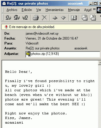W32/Mimail.C. Se propaga con el adjunto "PHOTOS.ZIP"