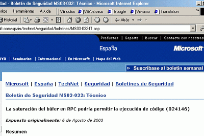 Nota: El enlace a dicho boletín (MS03-032) ha sido eliminado del servidor de MS, 24 horas